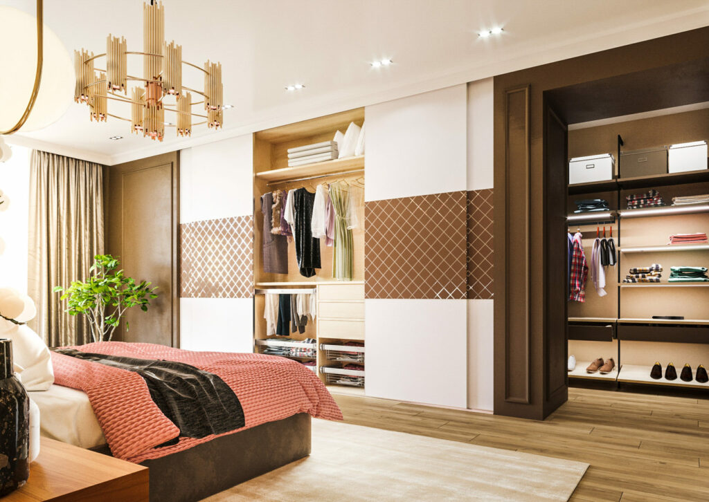 Встроенные системы хранения оснащаются удобными выдвижными ящиками, специальными отделениями, подъемными механизмами и даже интегрированными гаджетами, что значительно упрощает быт.